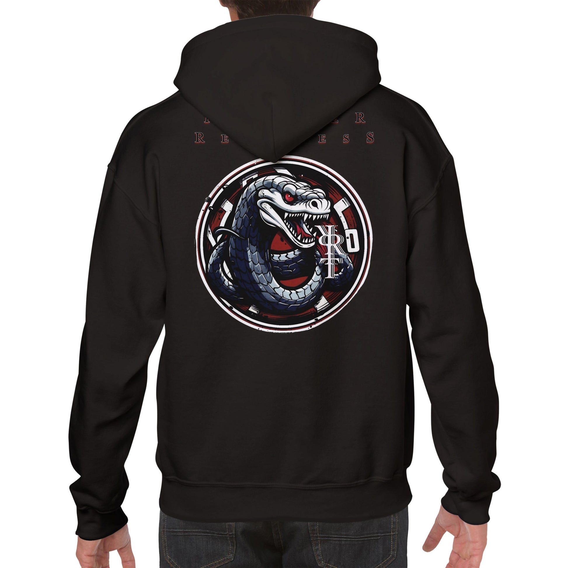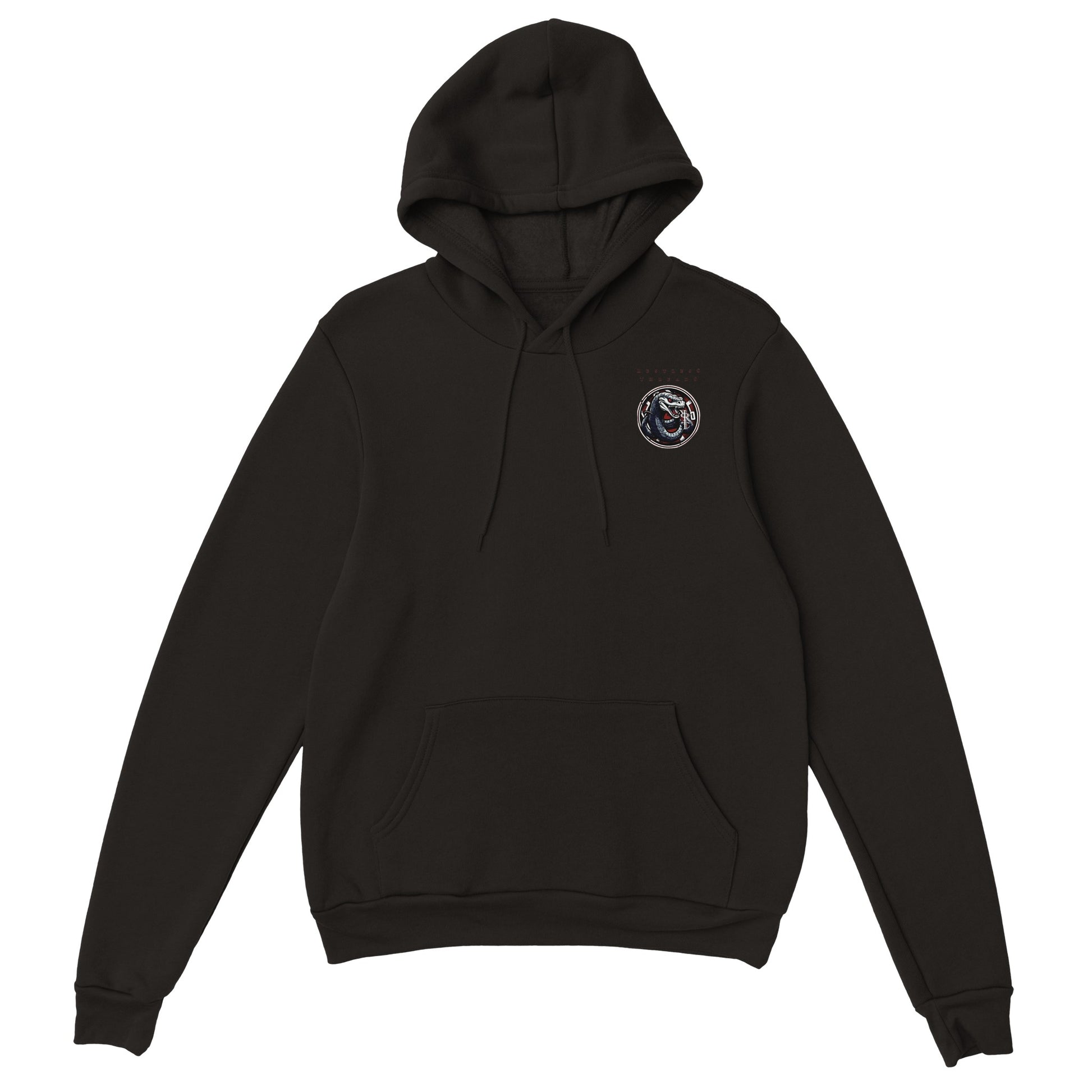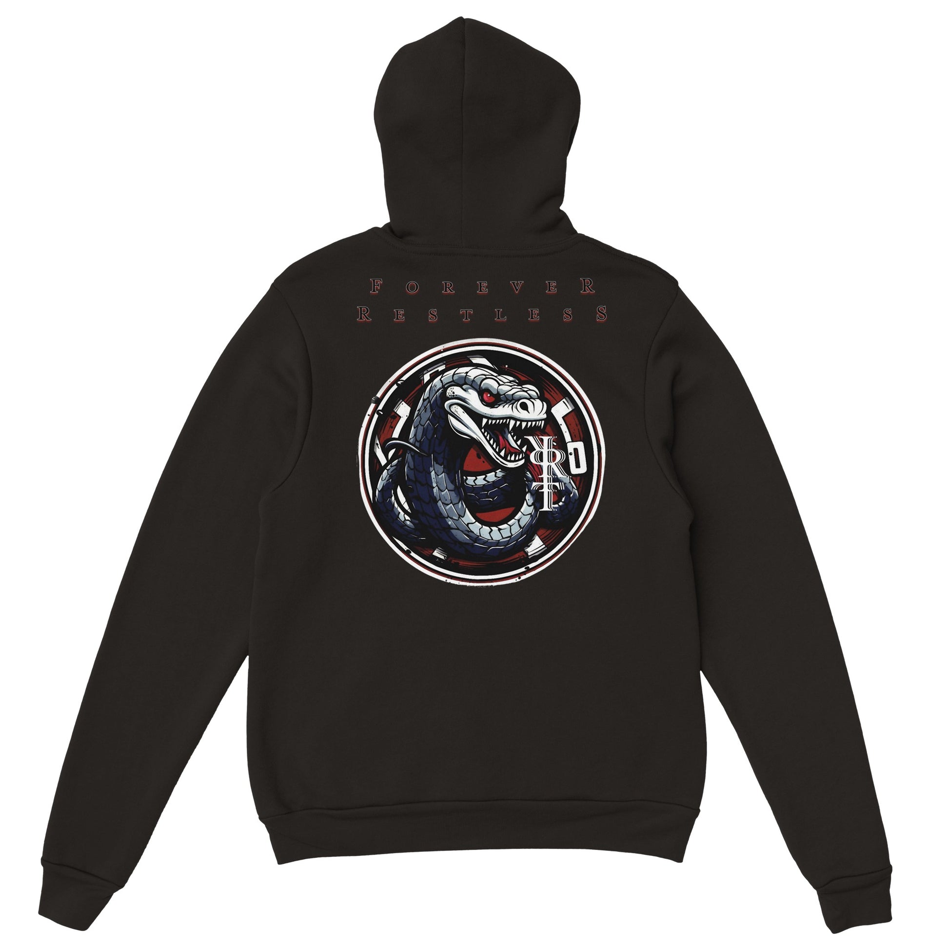 A classic hoodie with a large front pouch pocket and drawstrings in matching color.